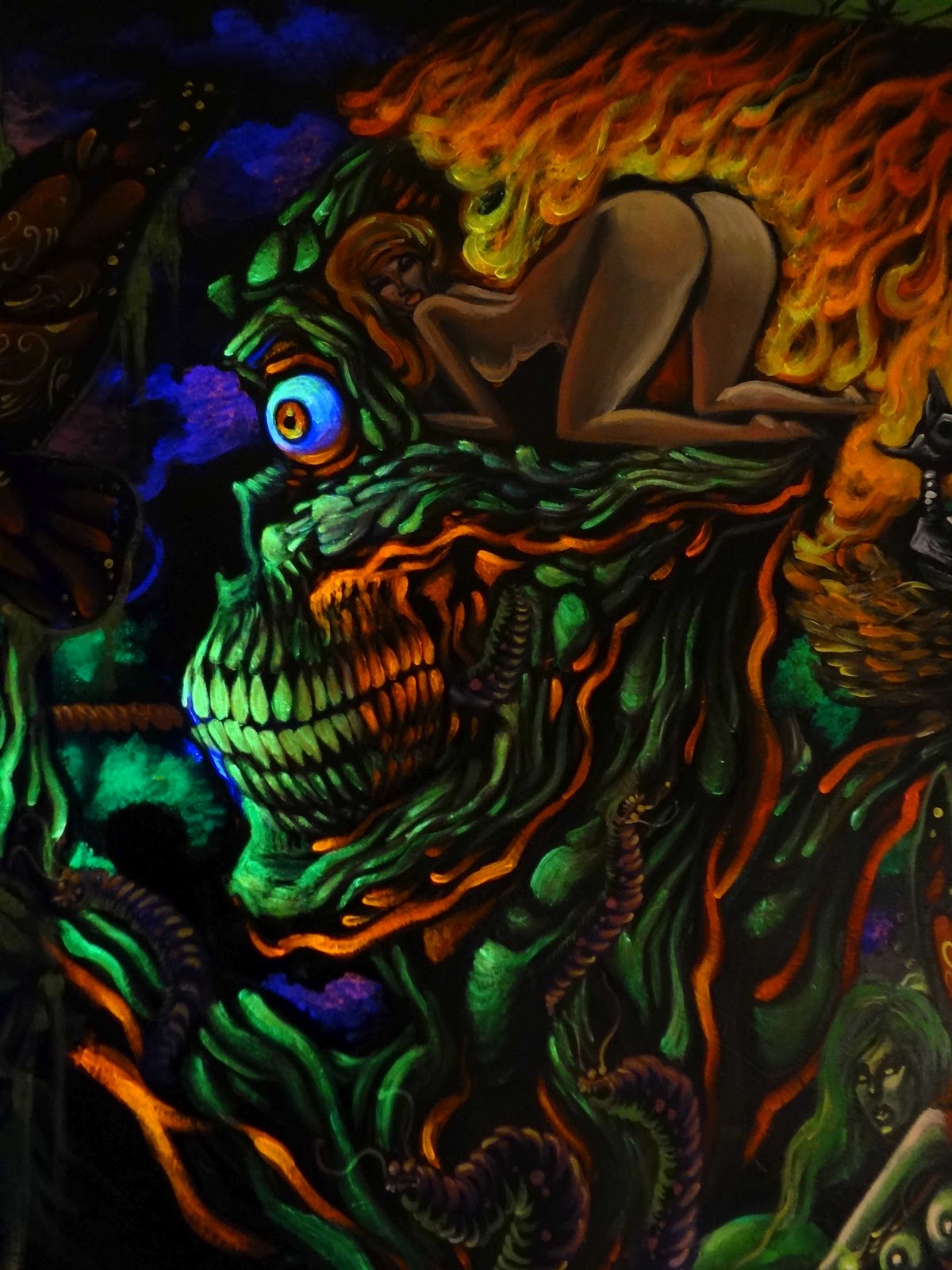 Its funny how we all burn trees to feel better, yet i always seem to feel like an old oak tree every time i desire a bomb beautiful female, Teeze Love BomBBness is a painting that i created symbolizing how i see myself within. It is a painting i made out of the lower shakras of my psyche which is that urge of desire and lust I feel for them. For the longest, i always thought it was immoral and wrong to lust and desire women until i had the realization that i am no different from the plants or nature. It is a natural thing to feel such an energetic force behind desire. since i am the natural environment i interpreted myself as a tree that is burning with desire over beautiful creatures. I see women as being butterflies and i fall into a trance and admiration with my passion for them. Especially when i use to smoke cannabis. I always see myself as being ugly and demented inside out, yet i always have the realization that i am also a part of nature especially the trees.